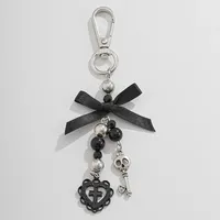 سلسلة مفاتيح سوداء قوطية عالية الجودة بفيونكة كلاسيكية متقاطعة للحب على شكل قلب حلقة مفاتيح للنساء هدايا مجوهرات الهالوين للنساء
